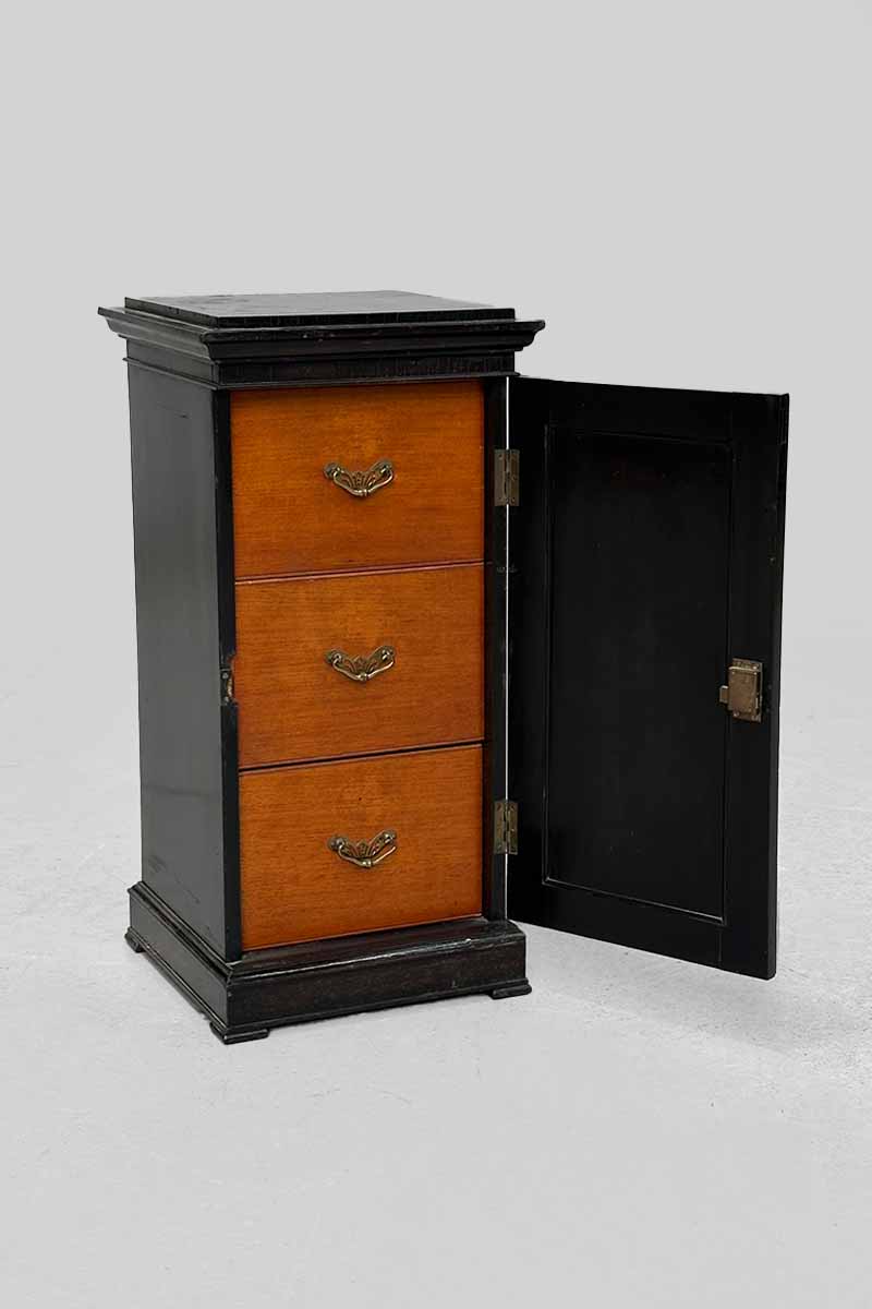Small 3 Drawer Ebonized Utility Cupboard with Door Front