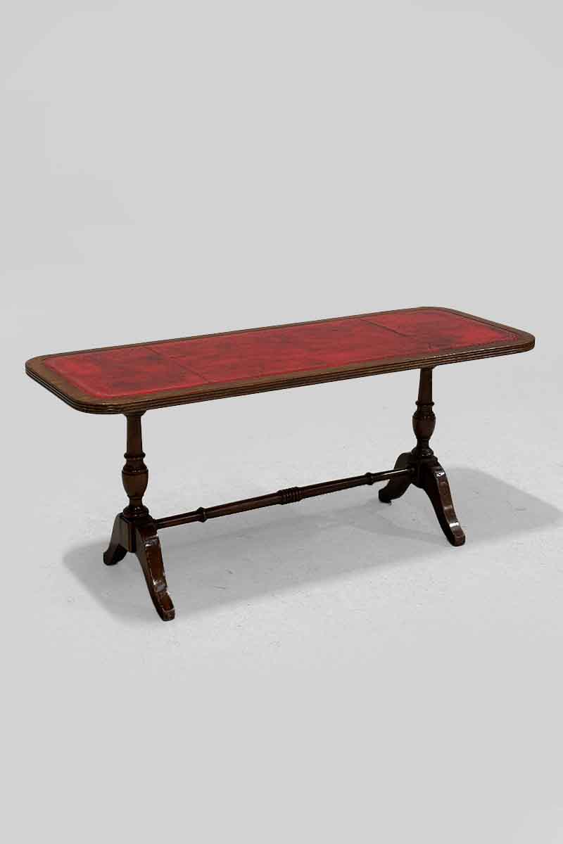 Small Mahogany Framed Coffee Table with Red Leather Top