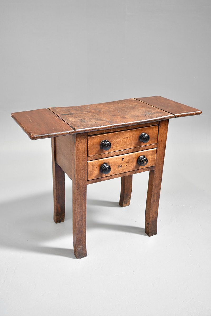 Small Darkened Pine 2 Drawer Side Table with Drop Leaves