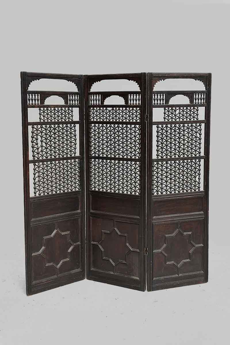 / Three Leaf Spindle & Ball Moorish Style Dark Wood Screen