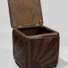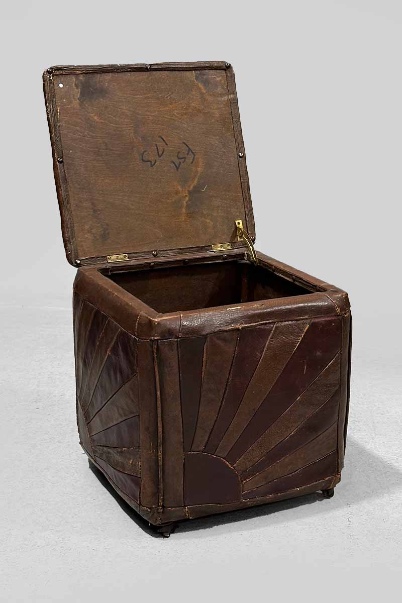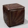 / Square Cube Shaped Brown Leatherette Pouffe with Sunburst Pattern