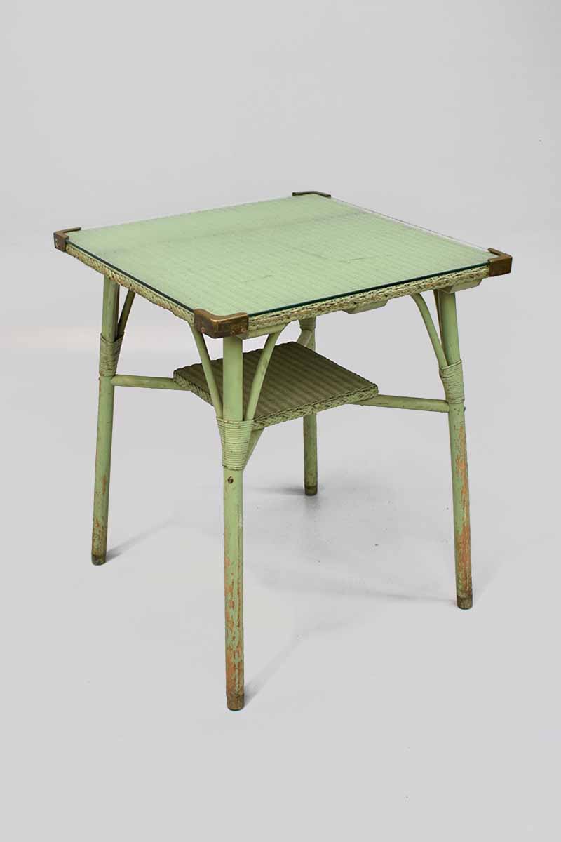 / Square Green Painted Lloyd Loom Table with Glass Top & Undershelf
