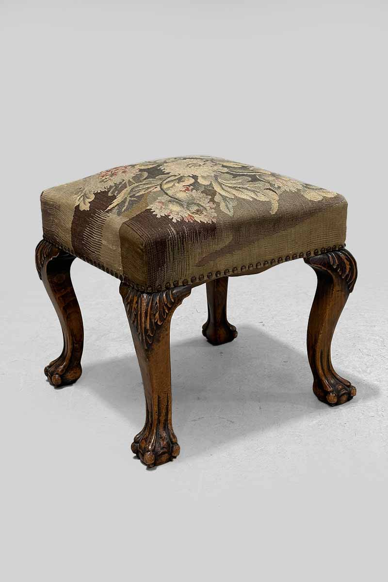 / Stool with Square Tapestry Seat on Cabriole Legs