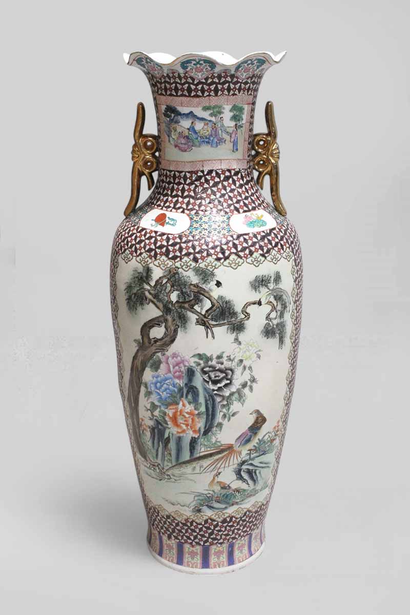 / Tall Picture Panel Vase with Red Black Diamonds