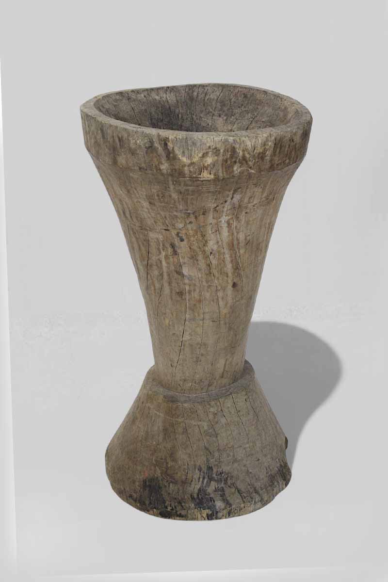 Tapered Floor Standing Wooden Mortar Made From A Tree Trunk