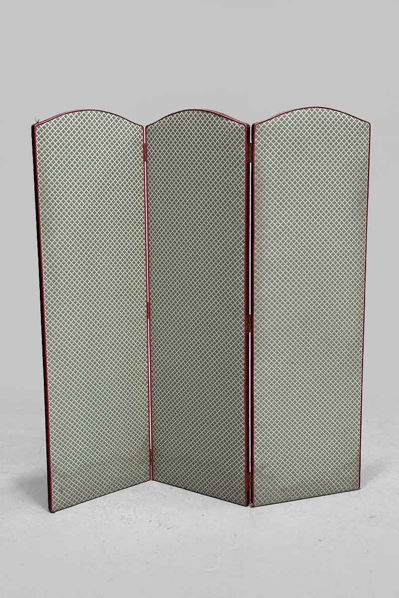 / Three Leaf Green & White Lattice Pattern Fabric Screen with Pink Trim