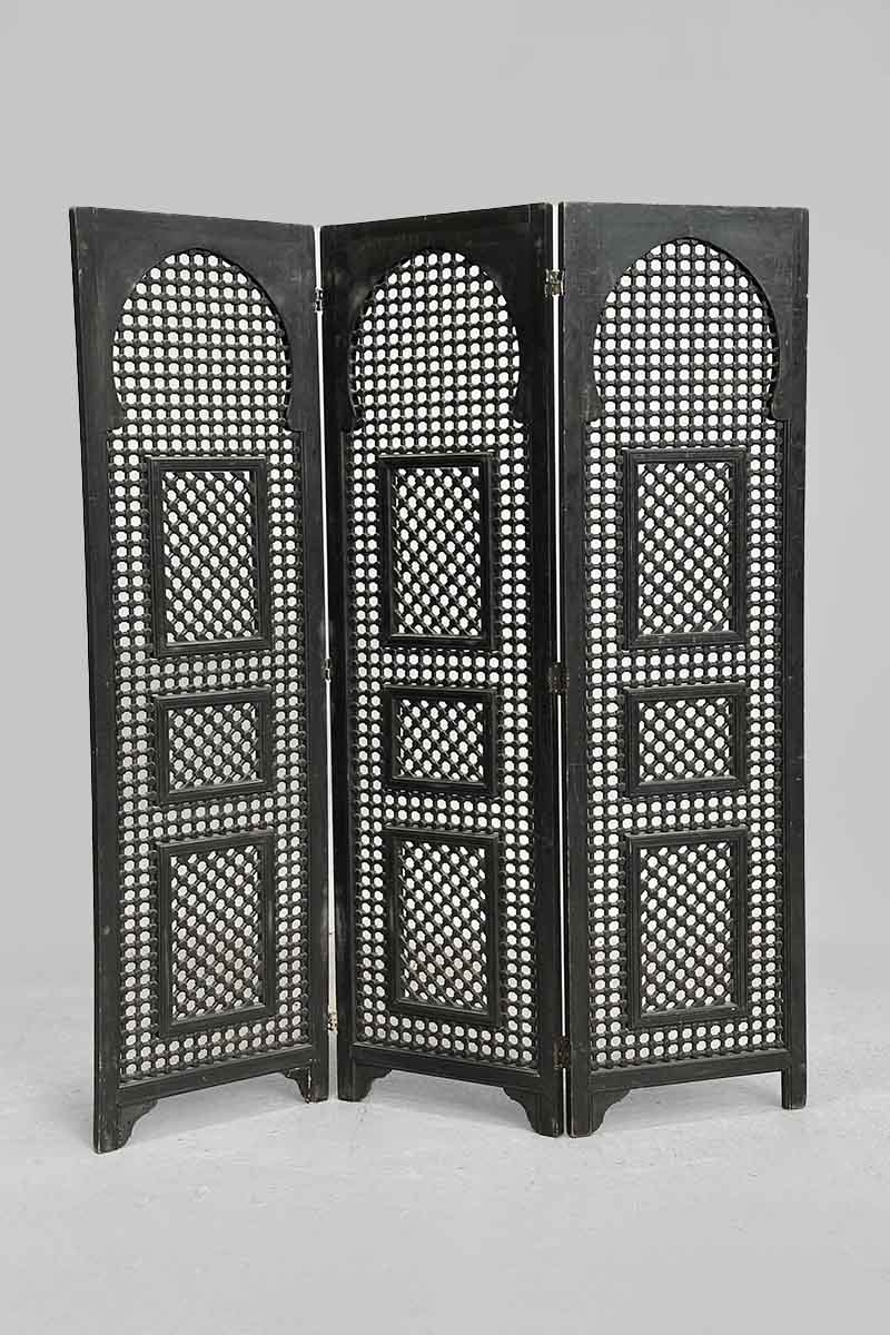 / Three Leaf Mashrabia Ebony Screen with Arched Top Panel