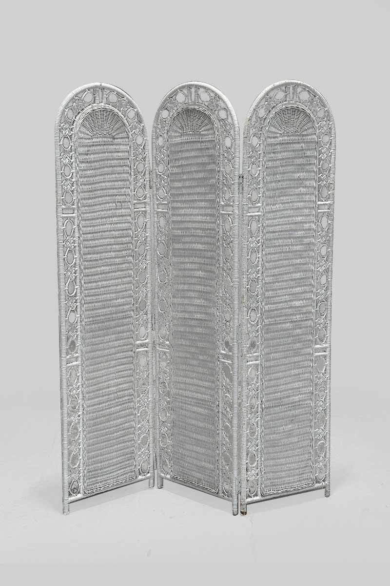 Three Leaf White Cane Screen with Arched Tops