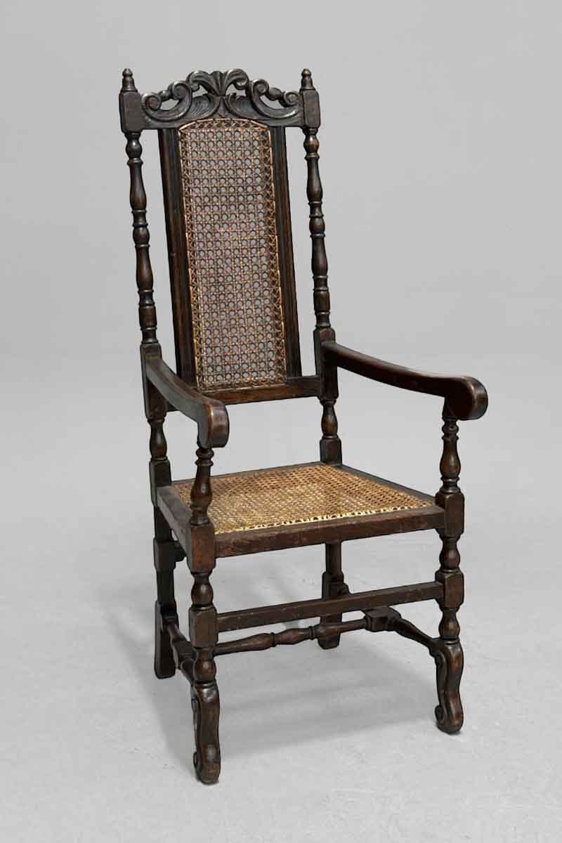 Turned & Carved Oak Carver Chair with Cane Seat & Back