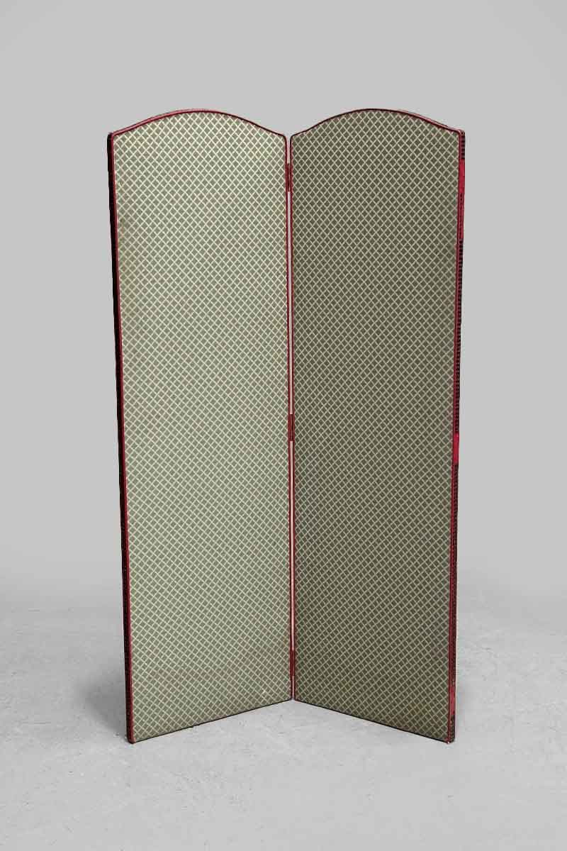 / Two Leaf Green & White Lattice Pattern Fabric Screen with Pink Trim