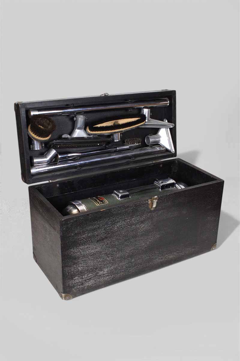 / Vactric’ Cylinder Vacuum Cleaner in A Black Wood Case with All Accessories, Late 1930’s