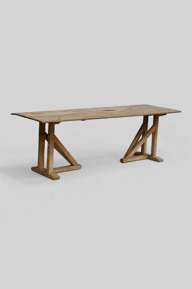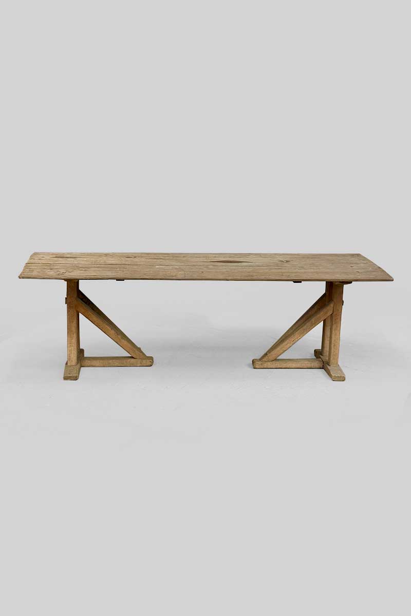 Very Long Rustic Pine Table on 2 Trestle Base Supports