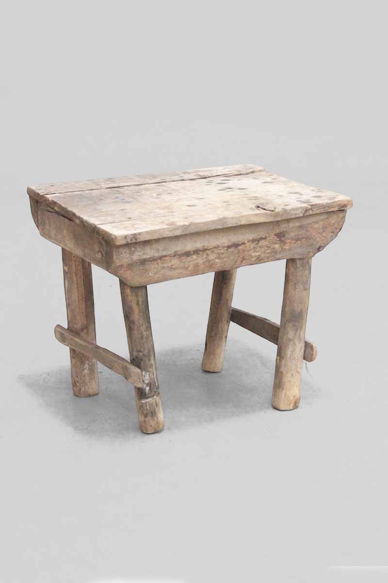 / Very Rough & Rustic Stool with Flat Top & Stretchers