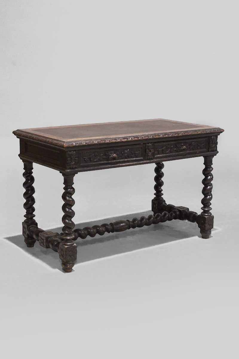 / Victorian Carved Oak Writing Desk with inset Leather Top
