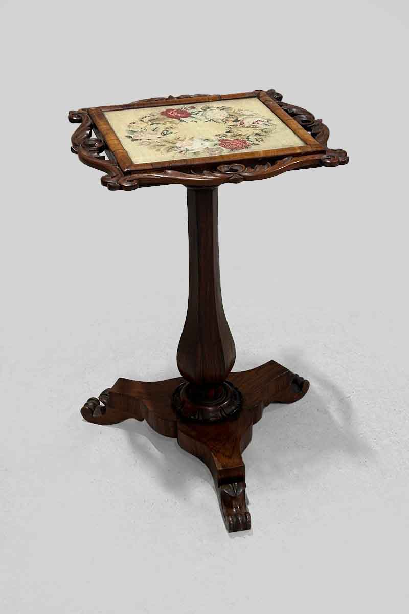 / Rosewood Carved Side Table with Glazed Tapestry Top