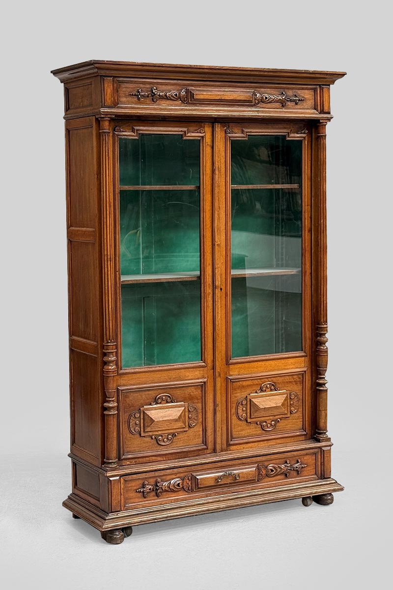 Walnut Carved & Decorative Bookcase or Display Cabinet with 2 Glazed Doors