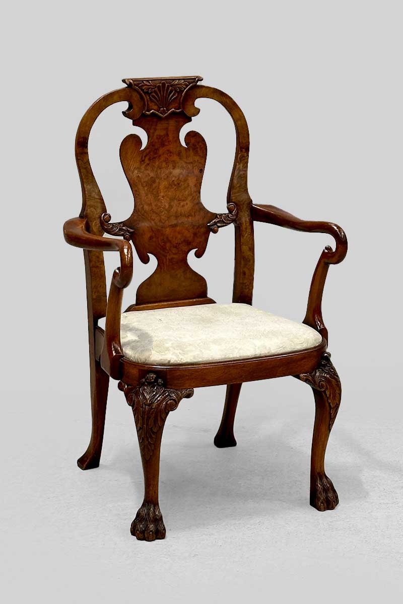 Walnut Carver Dining / Elbow Chair with Cream Damask Seat