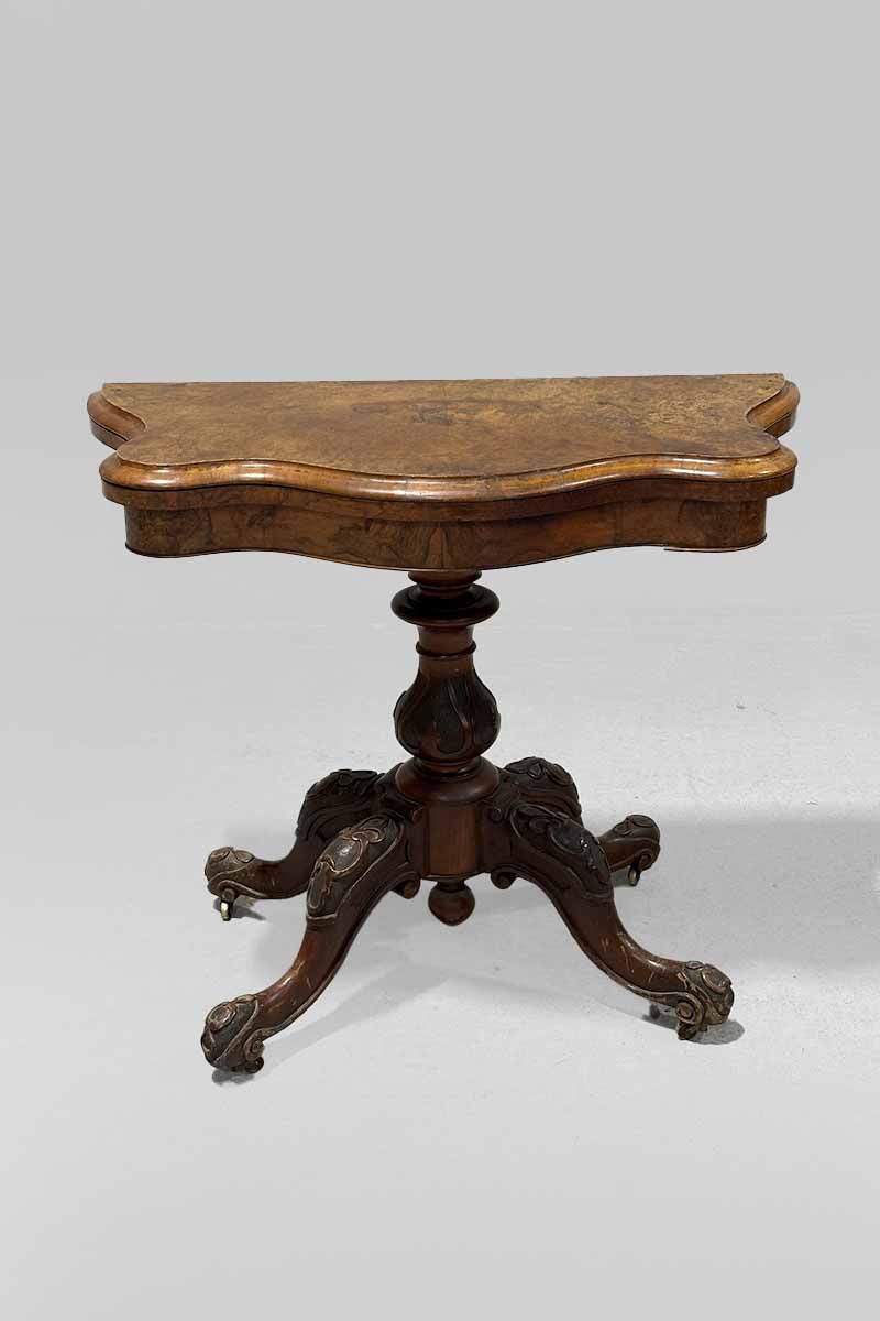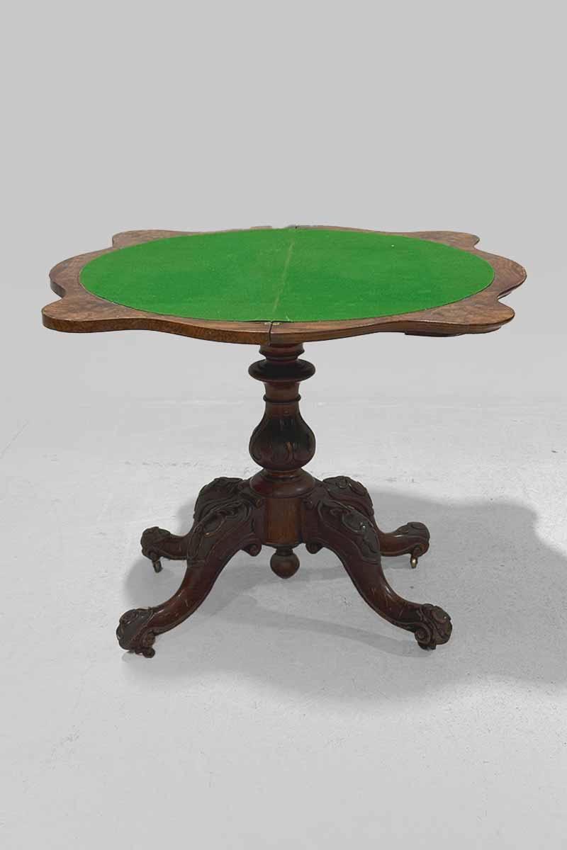 / Walnut Fold Over Card Table with Green Baize Interior