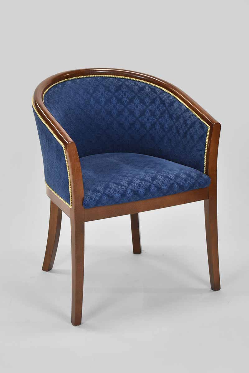 / Walnut Tub Chair with Blue Velvet Upholstery & Gold Trim