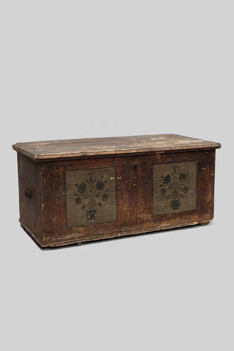 Wooden Trunk with Painted Flowers in Pots Decoration