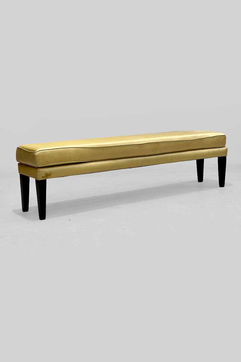 / Yellow Satin Bench with Detachable Cushion on Wooden Legs