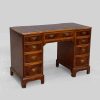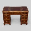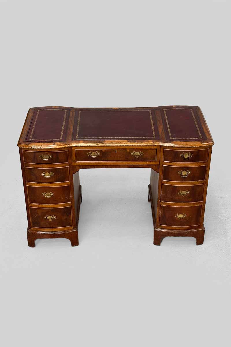 Yew & Walnut Small Bowed Front Pedestal Desk with 9 Drawers & Red Leather Panelled Top